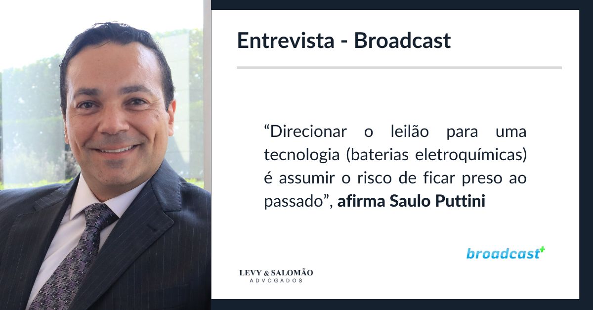 Em entrevista ao Broadcast, o sócio Saulo Puttini questiona as regras preliminares, colocadas em consulta pública, que irão orientar um futuro leilão de armazenamento de energia. O advogado enumera alguns problemas que podem levar à judicialização do certame e afirma que o edital deveria estabelecer parâmetros e requisitos de desempenho, em vez de direcionar a concorrência para baterias eletroquímicas.