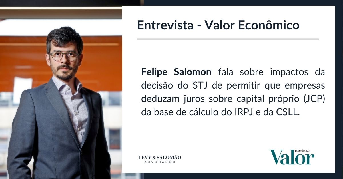 Em entrevista ao Valor Econômico, o sócio Felipe Salomon comentou decisão em repetitivo do Superior Tribunal de Justiça (STJ) de permitir a dedutibilidade dos juros sobre capital próprio (JCP) da base de cálculo do IRPJ e da CSLL, mesmo quando calculados com base em exercício anterior ao da aprovação de sua distribuição. A decisão terá efeitos econômicos relevantes, especialmente a companhias abertas e do setor financeiro, que utilizam o JCP como forma de remunerar acionistas.